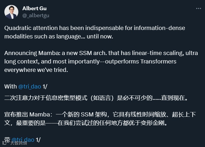 最近,一项名为「Mamba」的研究似乎打破了这一局面。