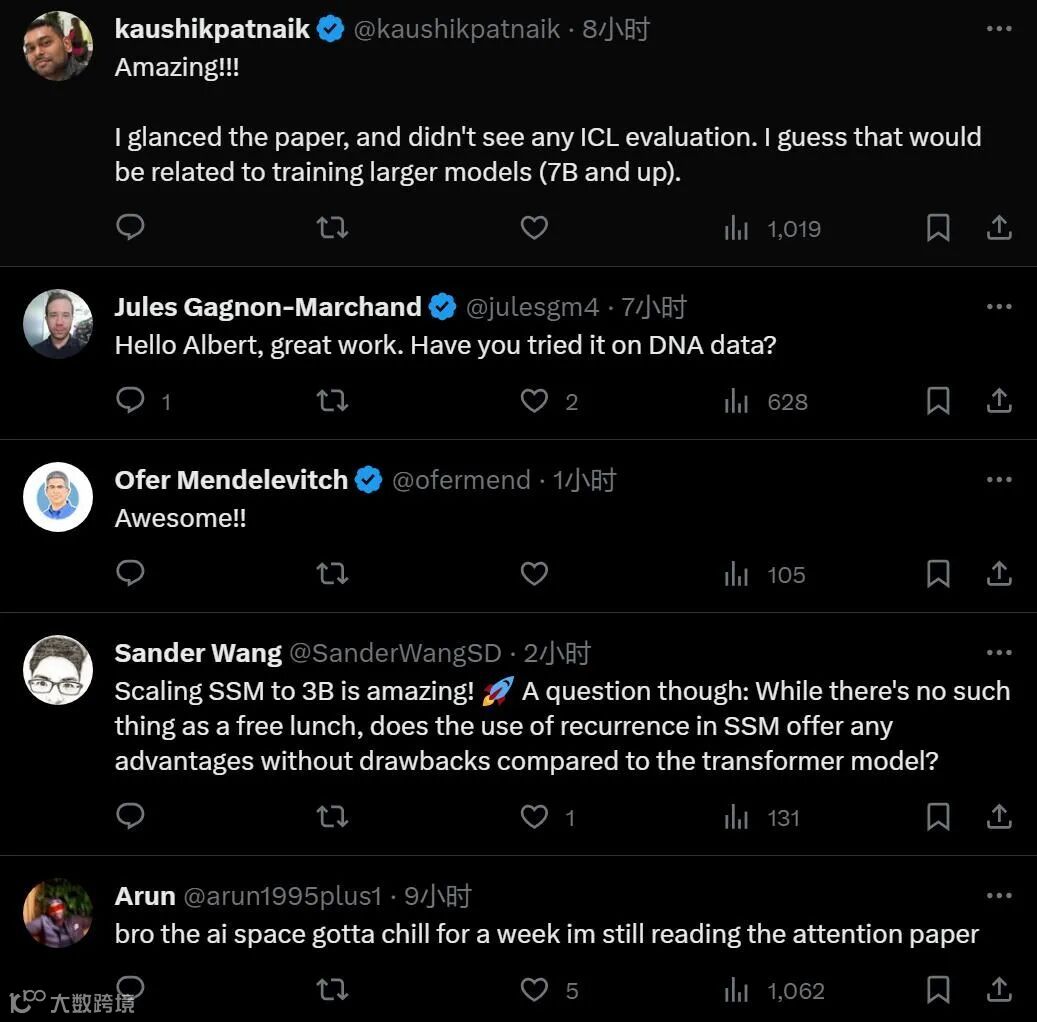 另外,这项研究的模型代码和预训练的检查点是开源的,参见以下链接:https://github.com/state-spaces/mamba.