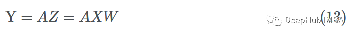 单行Ai对于Aij=1的每个指标j,我们知道节点i和j是相连的→eij∈E。例如,如果A2=[1,0,1,1,0],我们知道节点2与节点1、3和4连接。因此,当我们将A2与Z=XW相乘时,我们只考虑列1、3和4,而忽略列2和5: