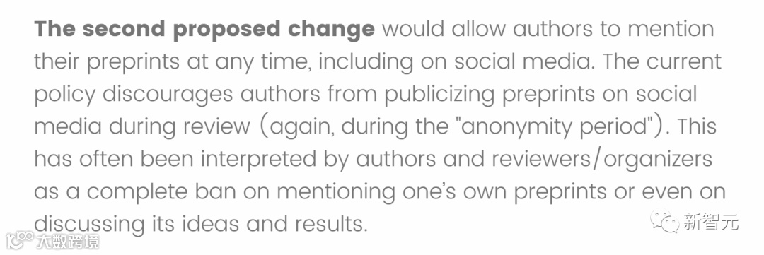 「第一个问题是,目前我们尚不清楚该政策是否严格禁止在匿名期间在社交媒体上发帖,或只是一种规劝,并不影响论文的接收。」