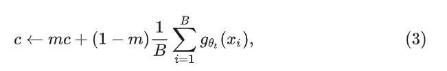 可以发现,对于教师模型的操作只有 center + sharpen。center 可以稳定 momentum 带来的影响,但是会使得教师模型的输出趋近于均匀分布,而 sharpen 正好可以解决这个问题。center 的超参数 可以通过下式来计算: