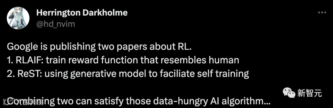 - 谷歌:根据AI标注的偏好训练奖励模型,然后进行RL微调。