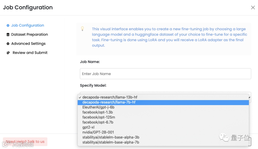 比如LLaMA-7B、GPT-J-6B、StableLM-7B等,Monster API提供了至少10个基础大模型。