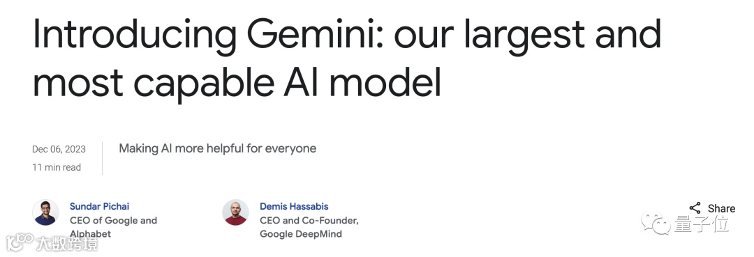 就在刚刚,谷歌CEO皮猜和哈萨比斯在谷歌官网联名发文,宣布推出这一万众瞩目的多模态大模型。