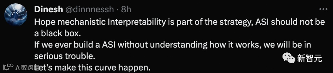 网友表示,希望机器的可解释性是战略的一部分,ASI不应该是一个黑盒子。如果我们有一天在不了解它是如何工作的情况下建立一个ASI,我们将有很大的麻烦。