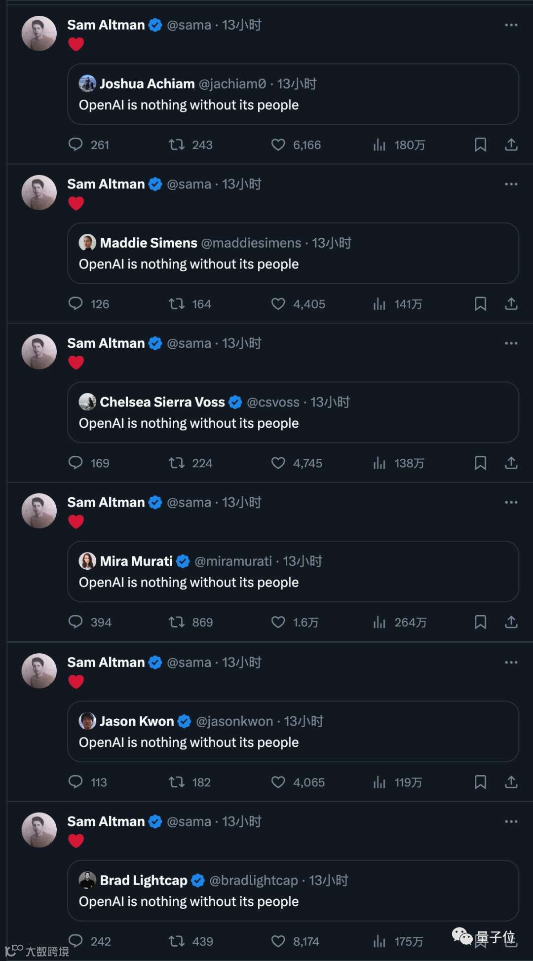 从奥特曼与布洛克曼的感谢中可以看出,首席执行官Mira Murati、首席运营官Brad Lightcap、首席战略官Jason Kwon在应对这场危机中发挥了关键作用。