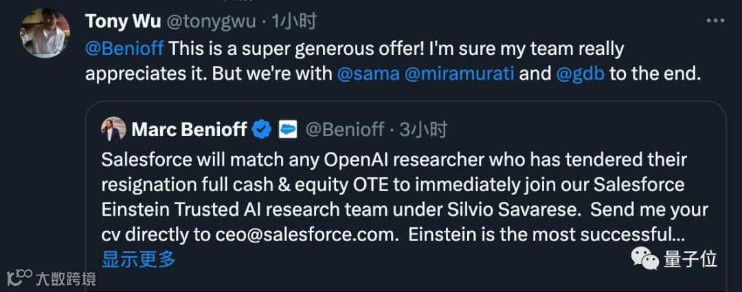 数据团队的Tony Wu公开拒绝了Salesforce创始人的邀请。
