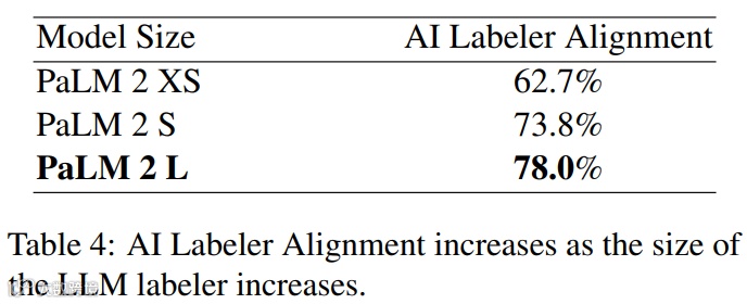 他们还进行了缩放实验,以量化打标签 LLM 的大小与偏好示例数量之间的权衡。