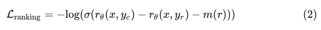 除此之外,LLaMa 2-CHAT 奖励模型训练的目标函数还额外地加了一个 margin 的先验项,使得目标函数变成了下式: