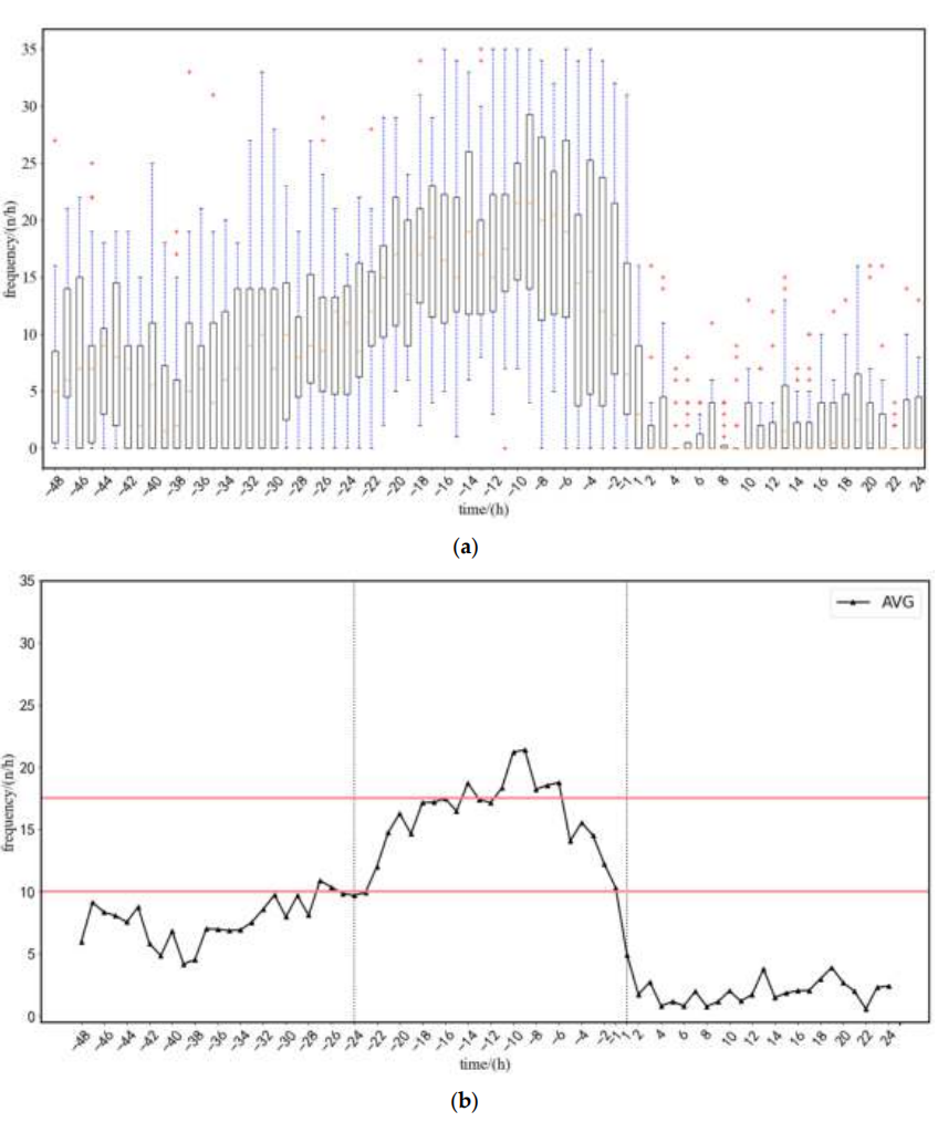 实验团队通过对 22 头母猪的数据进行测试和分析,得出产前 48 小时至产后 24 小时母猪平均姿势转换频率。根据变化频率(下图所示),团队将模型的预警策略归纳为: