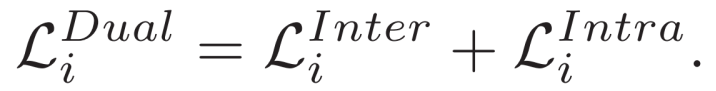 公式(14)中的典型监督损失和公式(17)中的双域知识蒸馏损失是相互补充的。前者要求模型学习对分类任务有意义的鉴别性表征,而后者则有助于用域内和域间的 soft 丰富信息使模型规范化。因此,总的训练目标是: