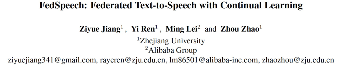 [5] FedSpeech: Federated Text-to-Speech with Continual Learning,2021,https://arxiv.org/abs/2110.07216
