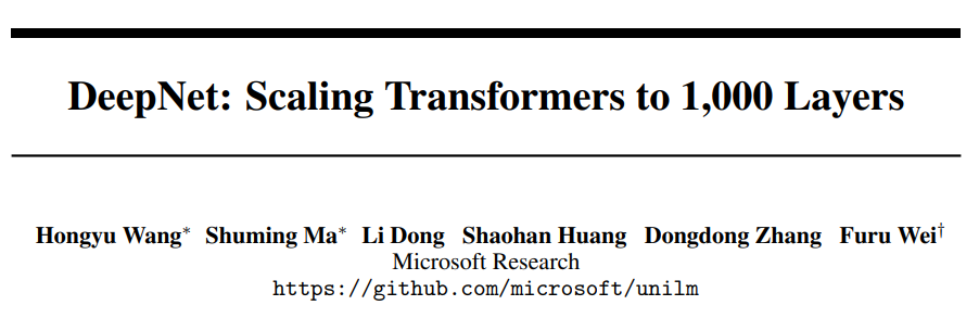 DeepNorm 论文地址:https://arxiv.org/pdf/2203.00555.pdf)