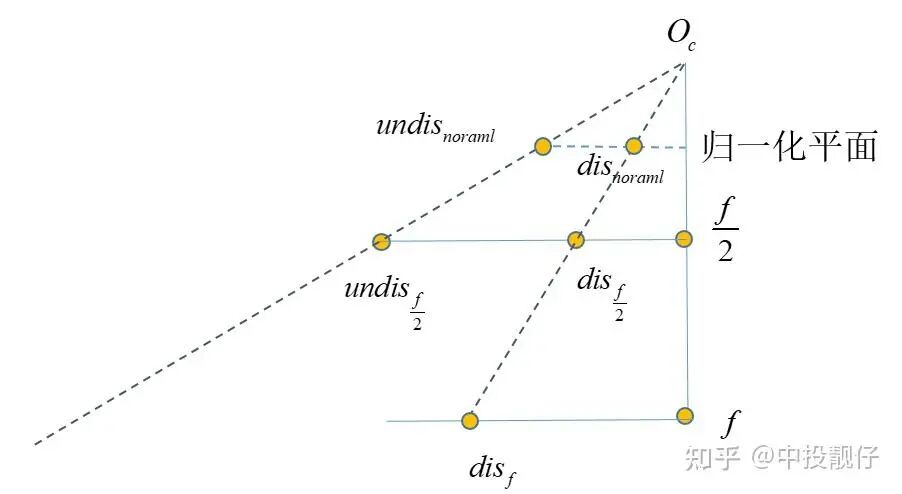 将相机焦距调整为 后, 使用新的焦距将 点转换到归一化平面上去, 得到undis -