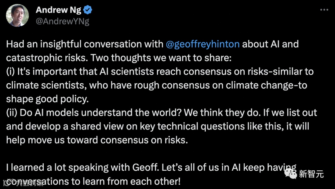 AI「教父」Geoffrey Hinton和吴恩达就人工智能和灾难性风险进行了一次深度的隔空对话。