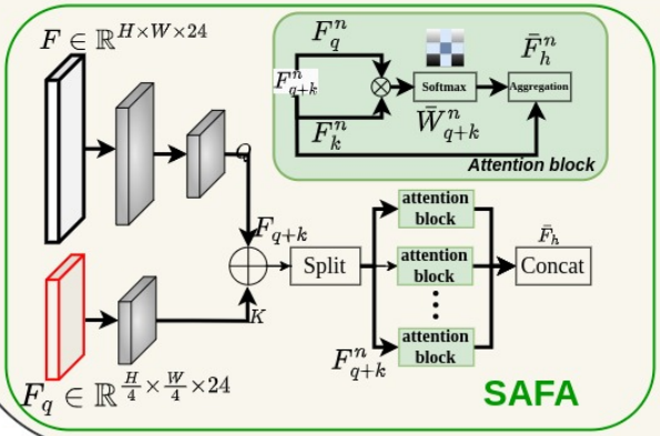 尺度感知注意力特征聚合(SAFA):灵感来源于多头注意力机制,使网络能够共同从不同尺度学习信息。 -