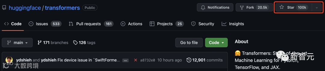 而就在今天,Transformer在GitHub上星标破10万大关!