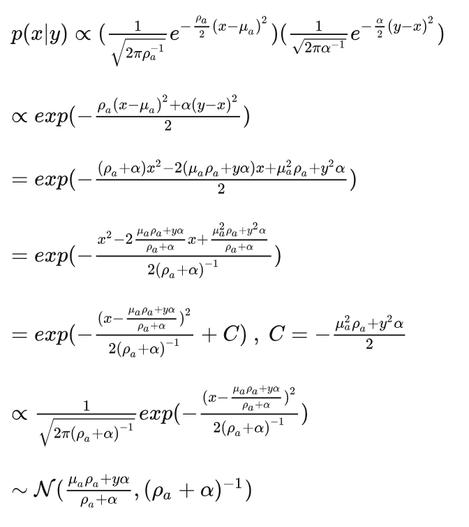 根据 式, 即结合了精度可加性的贝叶斯更新分布表达式, 并且应用 式, 可得: