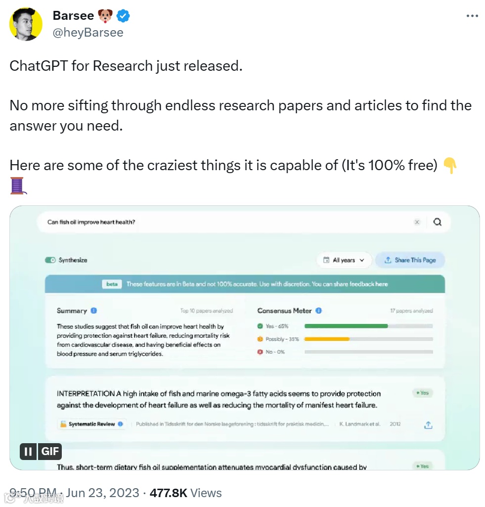推特博主 @heyBarsee 表示,他使用 Consensus 已经有一段时间了,在使用过程中它有着很不错的表现,具体如下: