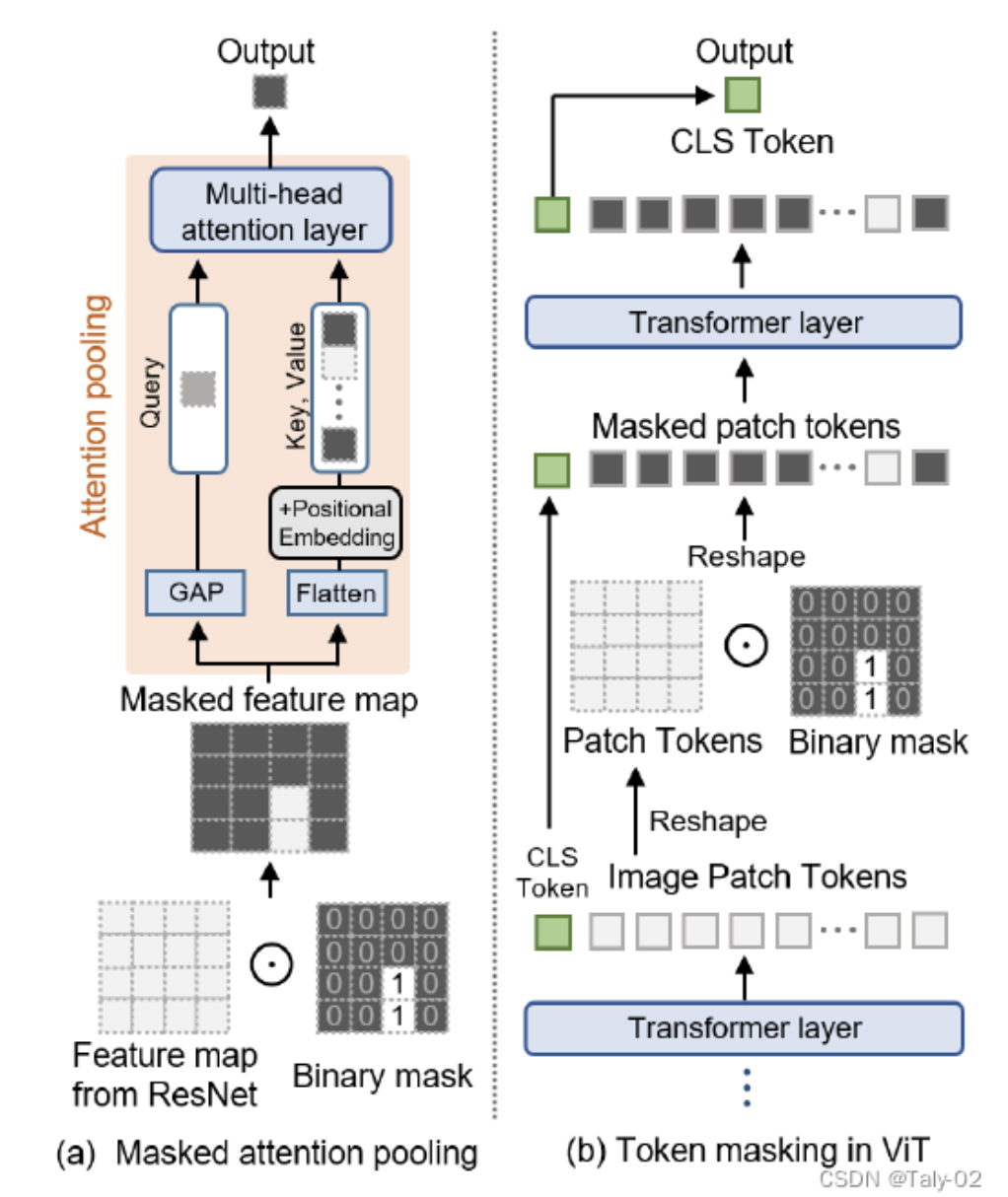 Local-context Visual Features:为了在给定掩码建议的情况下获得局部上下文视觉特征,我们首先mask image 然后裁剪图像以获得仅围绕 mask proposal 区域的新图像。裁剪和屏蔽图像后,它被传递到 CLIP 的视觉编码器以提取我们的Local-context Visual Features: