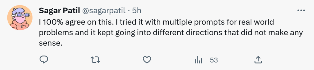 这类体验例子还有很多,有人针对现实世界的问题尝试大量 prompt,但 AutoGPT 总是朝着没有任何意义的不同方向发展。