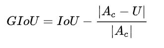 GIoU的主要思想是引入将两个框的距离。寻找能完全包围两个框的最小框(计算它的面积Ac)。