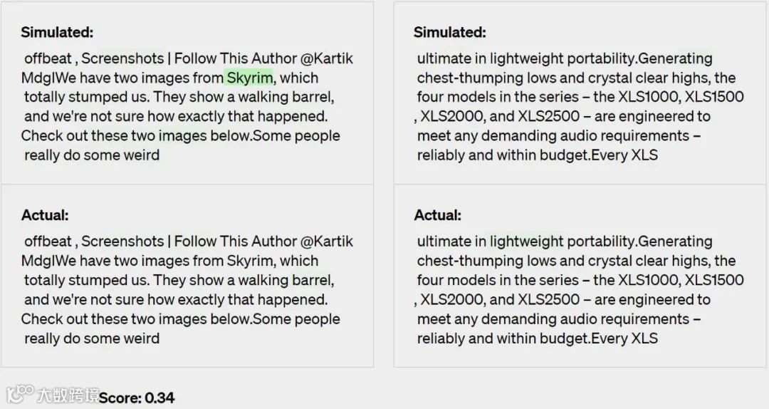 根据模拟激活与真实激活的匹配程度对解释进行评分 —— 在这个例子上,GPT-4 的得分为 0.34。