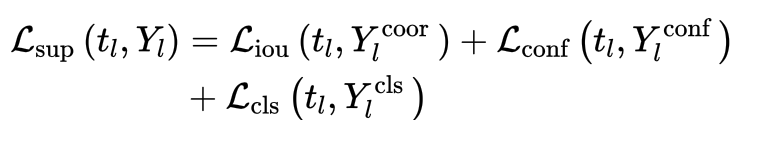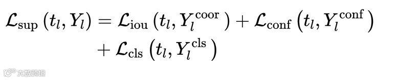 这块就不具体展开讲了,相信屏幕前的各位小伙伴都比我专业。此处我想表达的便是其实这里便涉及到一个多任务的联合优化问题。另一方面,对于无监督损失来说,一个直接的解决方案是选择高于固定阈值的预测边界框作为伪标签,可以表述为: