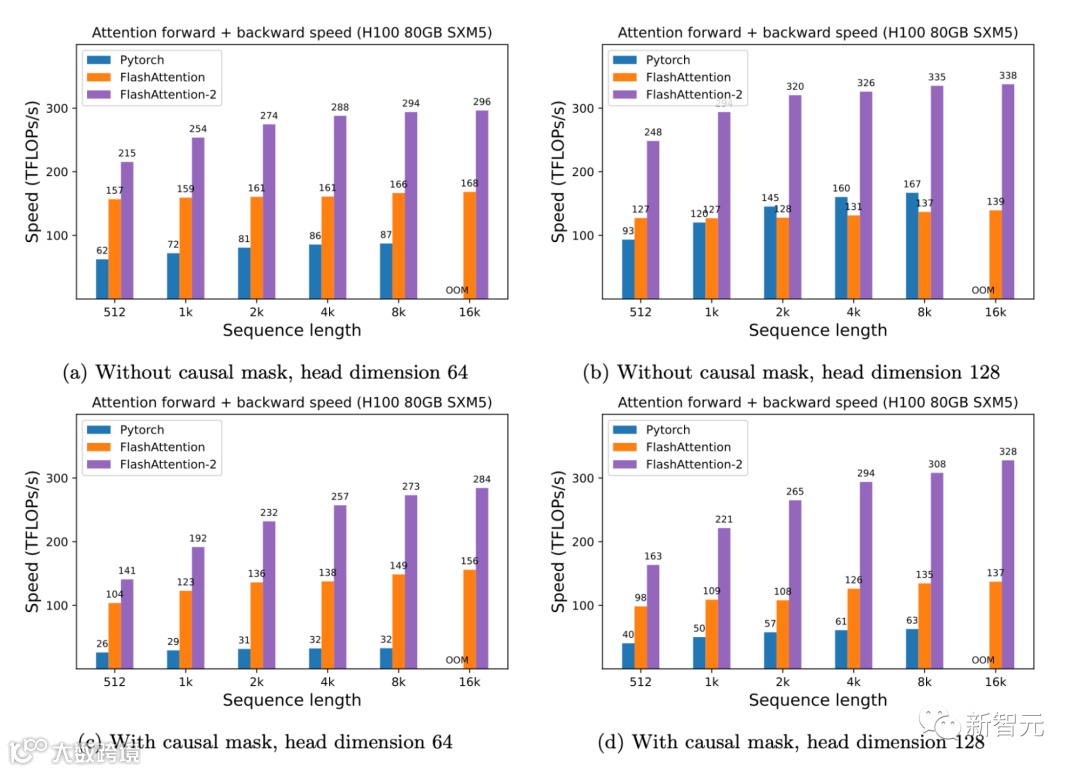 与PyTorch中的标准注意力实现相比,FlashAttention-2的速度最高可达其9倍。