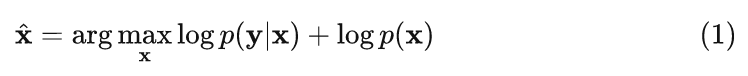 式中, 就相当于是 , 代表的是已有一些 clean 的图片 的情况下, 观测到 noise 图片 的概率。我们称之为 data fidelity term, 就相当于是 , 代表的是 clean 的图片 的先验。