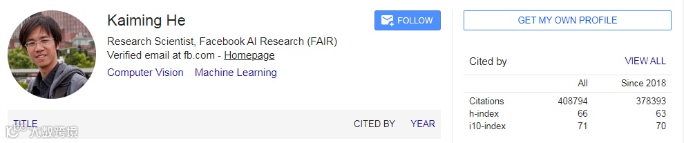 何恺明是 CV 领域的翘楚,其谷歌学术被引用次数已经突破40万次,在2022年人工智能全球最具影响力学者榜单中,何恺明获得第一名。