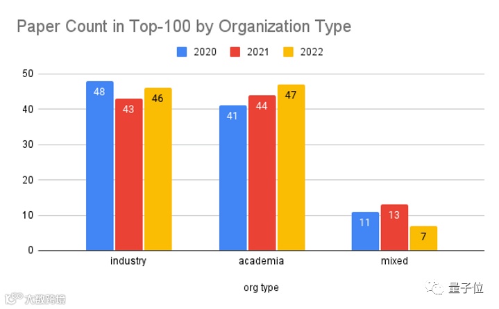 尽管前三名选手都来自工业界,但是如果只按照机构类型来分,学术界和它的表现其实基本不相上下。