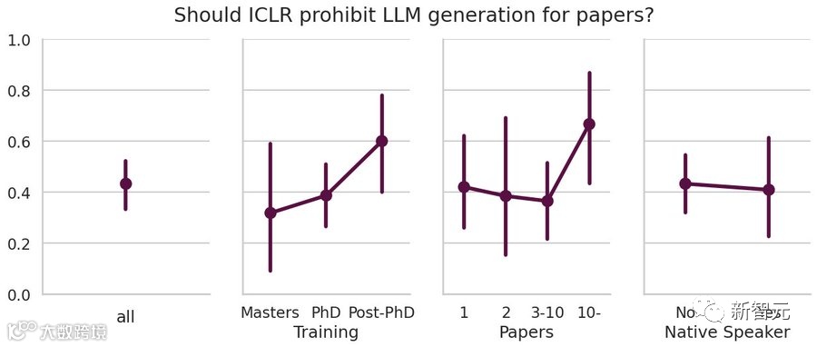 并且在科研界工作更久的群体,如博士、博士后、发表多篇论文的研究人员也更倾向于禁止LLM审稿。