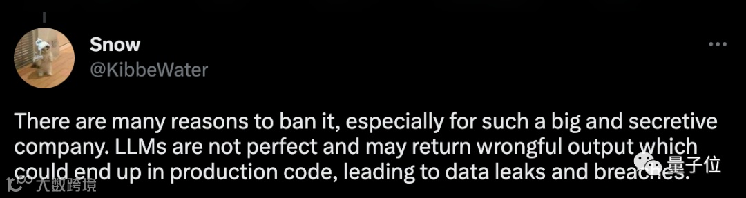 还有人表示,ChatGPT的输出结果还是有出错的可能,或许会导致bug产生、数据漏洞等,所以大公司禁止使用也合情合理。