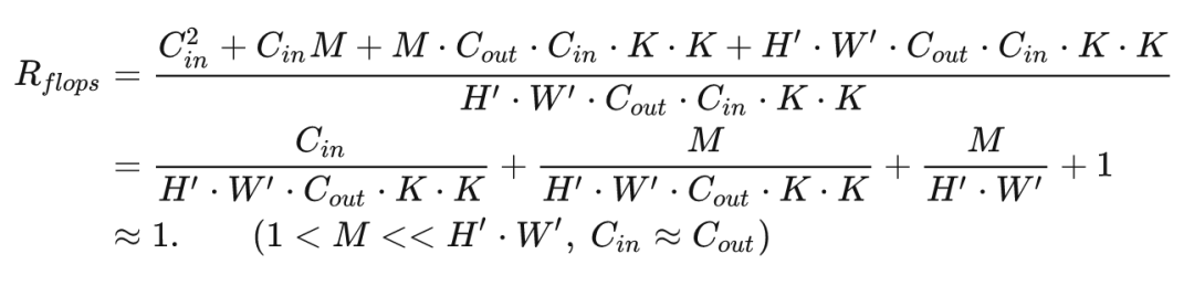 可以看到,动态卷积和普通卷积的参数量之比是 ,而动态卷积和普通卷积的 FLOPs 基本一致。这说明,每个动态卷积的参数量大约为常规卷积的 倍,且计算量的增加可以忽略不计。