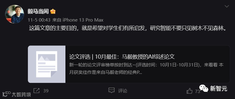 去年10月,马毅教授的AI综述论文还被ReadPaper评选为10月最佳论文。