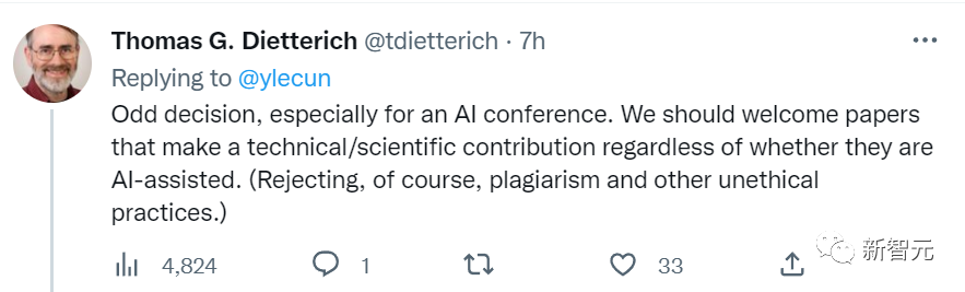 AAAI前主席Thomas Dietterich说:「这个规定很怪,对于一个人工智能会议来说更是如此。我们应该欢迎所有为科学技术做出贡献的文章,不论作者是否接受了AI的辅助。」