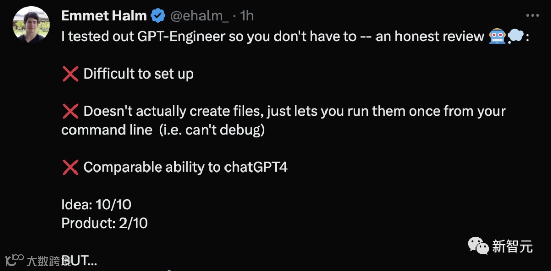 然而,这个项目火虽火,一位网友测试了GPT-Engineer,给出了体验: