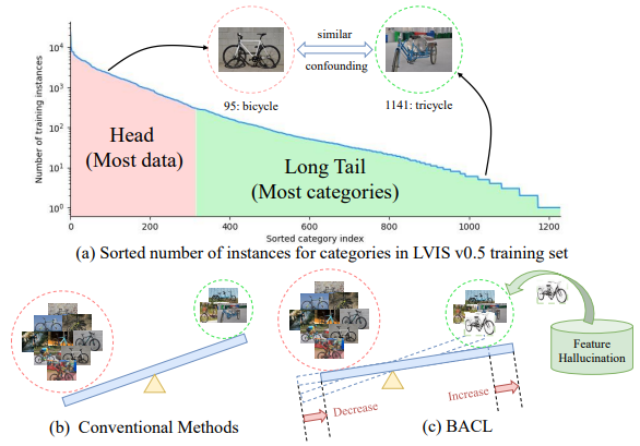 TL;DR: 本文针对长尾物体检测问题提出了一种新颖的解决方案,即 BACL 框架。通过前景分类平衡损失和动态特征幻觉模块,BACL 能够有效地解决长尾分布下的分类偏见问题,并显著提高了检测性能。这一工作对于现实世界中长尾分布的物体检测具有实际意义和应用前景。