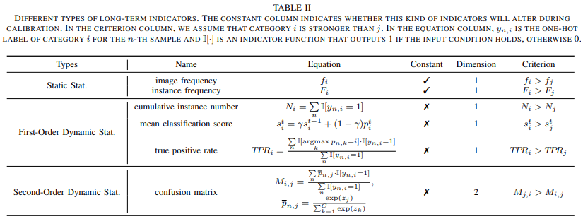 为了有助于在分类器学习阶段校准分类偏差,引入了一对互补的长期和短期指标。这些指标有助于反映分类器的学习状态,特别是对于不同前景类别的倾向和每个类别的分类正确性。