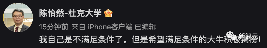 杜克大学教授陈怡然也饶有兴趣地转发,称自己是不满足条件了,但希望满足条件的大牛积极揭榜。