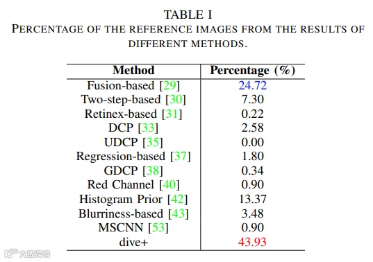 主要方法:文中提出了一个新的具有950张水下图片的数据集UIEBD,包含各个水下场景,以及水下各种特征退化(光线不足、雾)的情况,用数据集UIEBD对12种现阶段主流的水下图片增强算法进行评测和验证。并且提出基于fusion的水下图片增强模型DuwieNet。