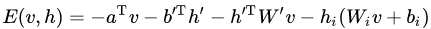 Hinton 把神经元的偏置(对于可见层记作a, 对于隐含层记作b ) 作为 Ising model 的 “外场”,NN的权重W作为 Ising Model 的“内部耦合系数”(两个神经元之间的权重越大,代表它们的耦合越强,关联越强),于是能量就可以写作非常简单的形式: