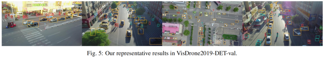 本文提出了一种边缘实时和Anchor-Free单阶段检测器EdgeYOLO,其一些代表性结果如图5和图6所示。如实验所示,EdgeYOLO可以在边缘设备上以高精度实时运行,其检测小目标的能力得到了进一步提高。