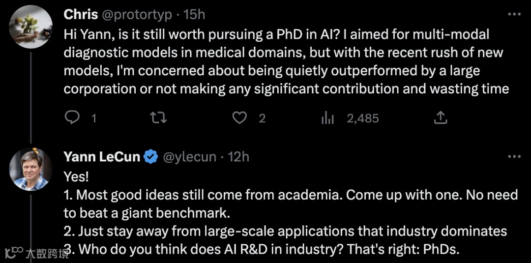 一位网友对自己博士要做的领域产生疑问,向LeCun求助: