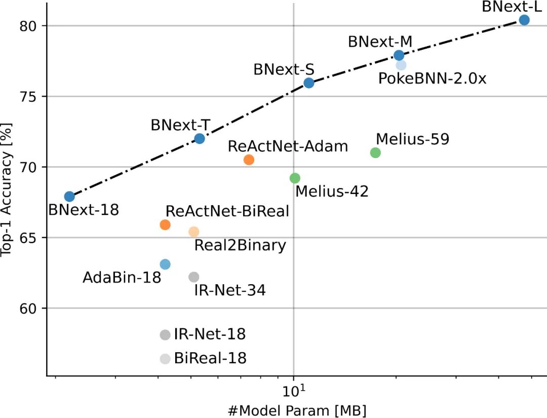 来自德国HassoPlattner计算机系统工程研究院的NianhuiGuo和HaojinYang等研究者提出了BNext模型,成为第一个在ImageNet数据集上top1分类准确率突破80%的BNN。>>加入极市CV技术交流群,走在计算机视觉的最前沿