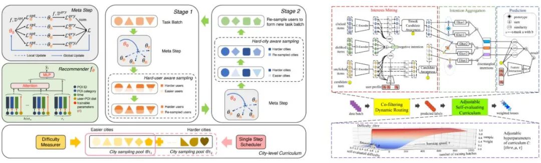 朱文武教授与王鑫助理研究员的课程学习研究工作包括应用于城市兴趣地点推荐的课程元学习方法、基于带噪多反馈信息的课程解耦商品推荐、基于课程学习的共享参数神经架构搜索、以及基于课程难度自适应的组合优化问题求解等等。研究成果发表于 SIGKDD、NeurIPS、ACM MM 等高水平国际机器学习会议上。
