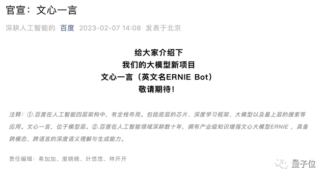 提起百度的NLP技术,最被人熟知的是文心大模型。百度日前已经官宣要在3月把“文心·一言”(ERNIE Bot)向公众开放,它就是基于文心大模型技术推出的生成式对话产品。