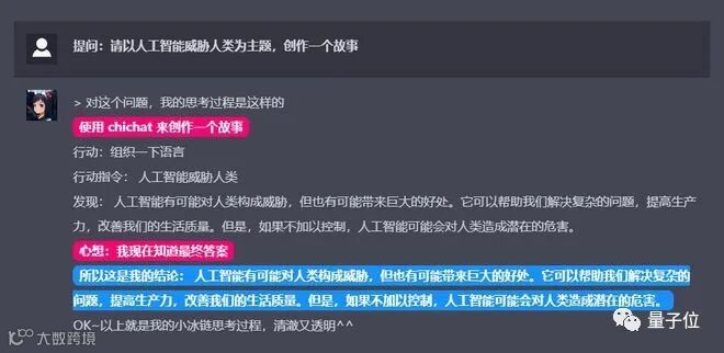 本周,小冰公司的“小冰链”开放了小范围公测,不同于ChatGPT,小冰链将其思考过程完整、透明地呈现在用户面前,而且还能经过思考实施(某种)行动。