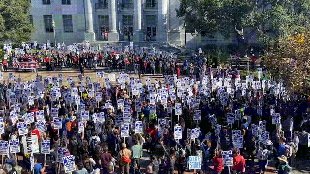 加州大学体系内的助教、研究生、博士后学者、学术研究员等,都参与了这次大罢工。